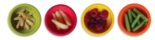 • Before children start cooking, prepare fruit and vegetables so they are easier to handle. Cutting food to create a flat base makes it more stable and safer for children to continue preparing.